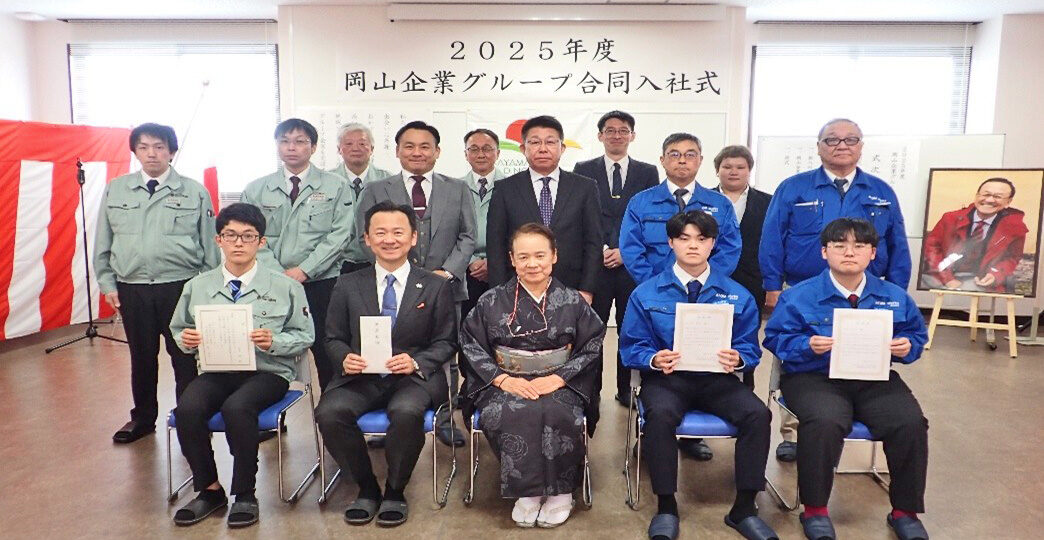 2025年4月1日 2025年度岡山企業グループ合同入社式を(株)岡山建設において、岡山信広岡山企業グループ代…