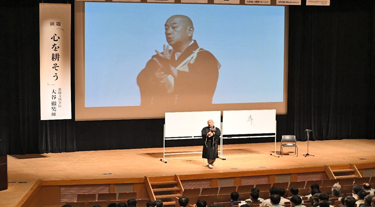 大会は1部と2部に分かれており、1部では薬師寺執事長の大谷徹獎師を招いて「心を耕そう」と題して講演し、相手の話をよく聞き、自分自身とも対話することの重要性を伝えていただきました。今までの自分は相手の話に耳を傾けることができていたのか、自分自身と対話することができていたのかを改めて考えさせられる講演でした。