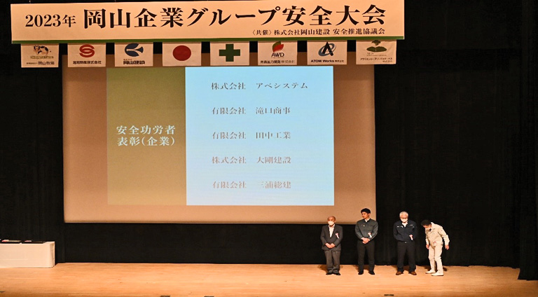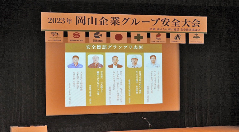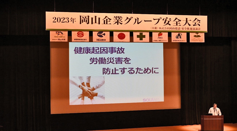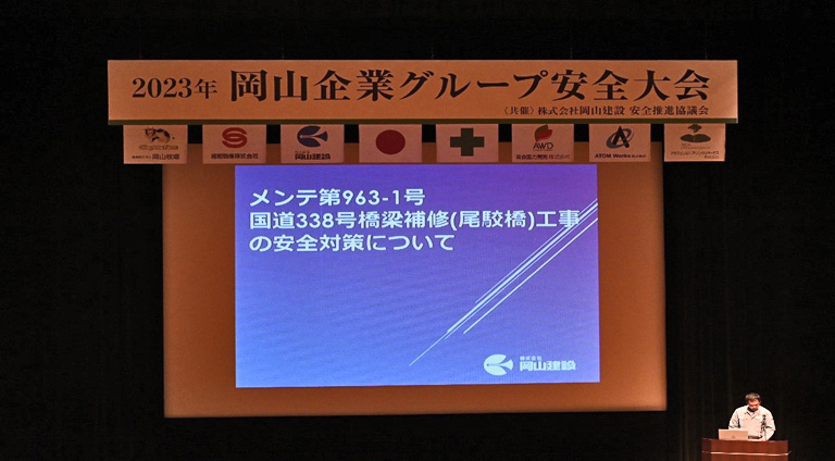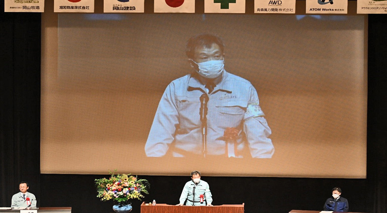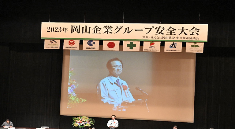 2023年6月16日、岡山企業グループ安全大会を六ケ所村文化交流プラザ「スワニー」において開催しました。この安全大会は、全国安全週間のイベントの一つとして、行われたもので、岡山企業グループ、岡山建設安全推進協議会関係者235名が参加しました。