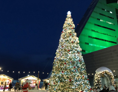大型クリスマスツリーの点灯スイッチONでお子様に感動のプレゼントはいかがですか。