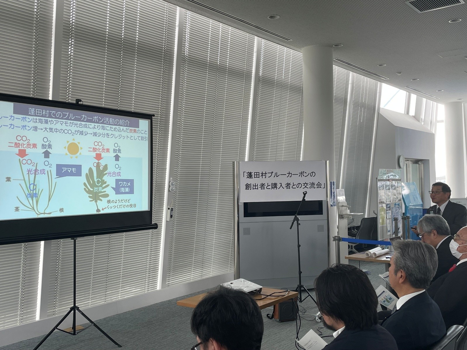 2025年10月29日に青森フェリーターミナルで「蓬田村ブルーカーボン創出者と購入者との交流会」が行われ、当社も参加いたしました。この交流会は、蓬田村漁業協同組合が、約20年前から実施してきたアマモ場生態系を保護しており、2023年には、Jブルーカーボンクレジットが認証され、このクレジットを購入した企業と創設者の蓬田村関係者が一堂に会して行われました。
