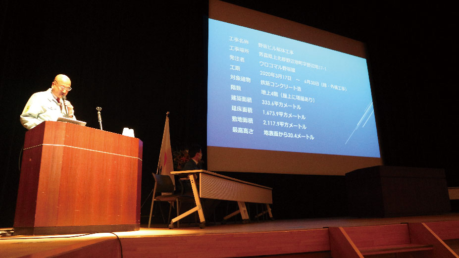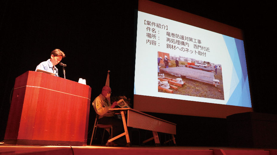 むつ労働基準監督署 署長 本田義和 様を来賓にお迎えし、岡山企業グループにおける安全への取組の発表(㈱岡山建設、ATOM Works㈱)、安全表彰(協力会社、岡山企業グループ)、安全宣言(代表:㈱岡山建設 沼端隆行)を行いました。