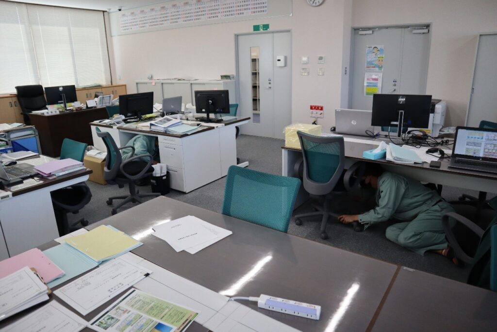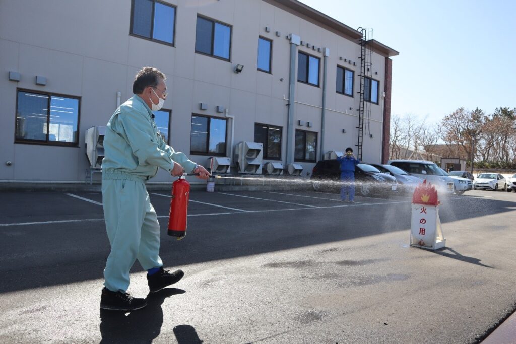 お知らせ 火災・避難訓練を実施 2022年3月29日 by 管理者 当社が定めた消防計画に基づいて、本社従業員全員が参加して、地震発生時の体勢、火災時の初期活動、避難誘導、避難、消火器の取り扱いに至る訓練を行いました。 ・地震(震度6強)の発生(机の下に身を隠す) ・119番へ通報(火災発生) ・避難場所への誘導 ・避難状況の報告 ・消火器取扱及び消火訓練