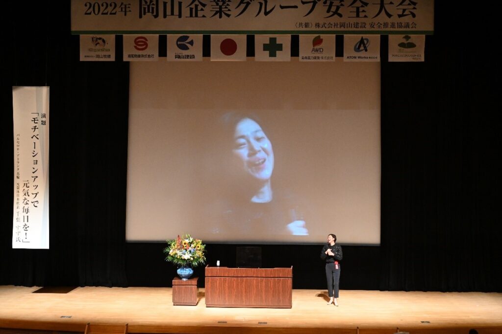 大会は一部と2部に分かれており、1部では千葉すず氏を招いて「モチベーションアップで元気な毎日を」と題して講演し、競泳など自分の体験を通じて、目標を持つことの意味、大切さを伝えて頂きました。元気をいただくパワフルな講演でした。