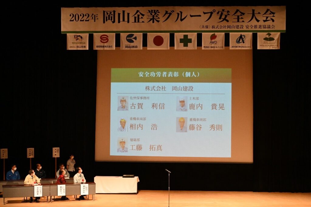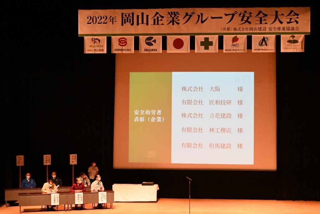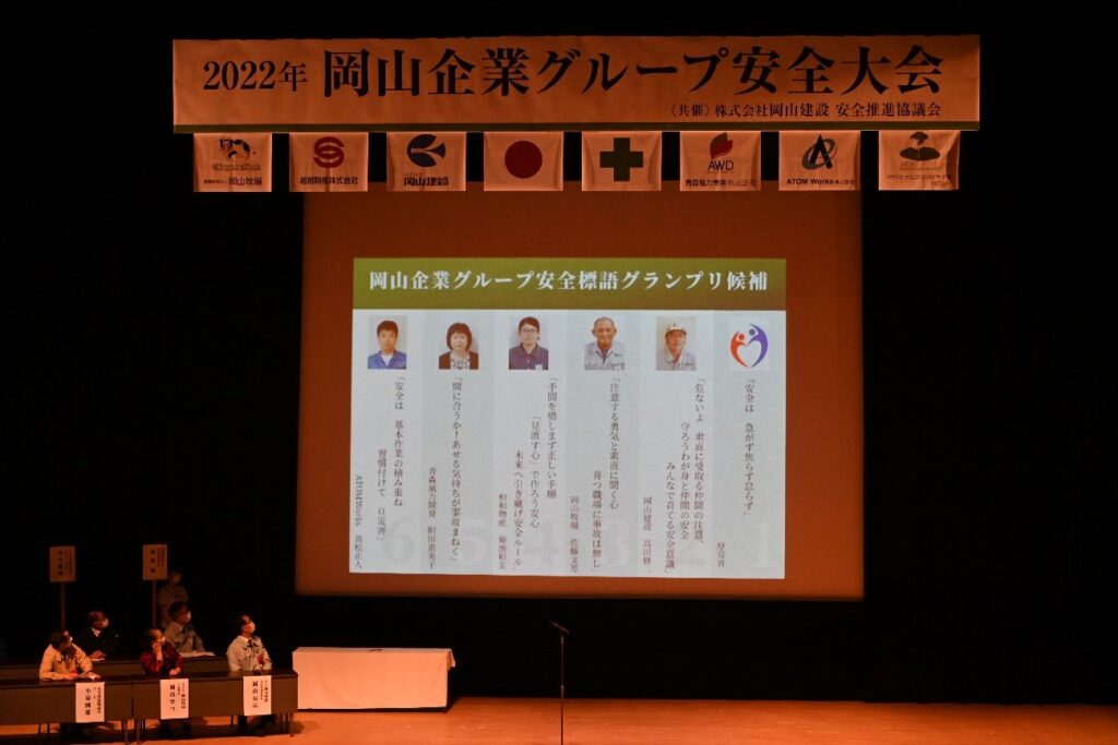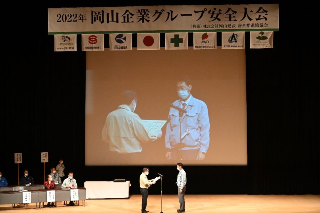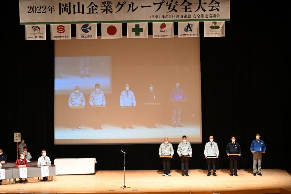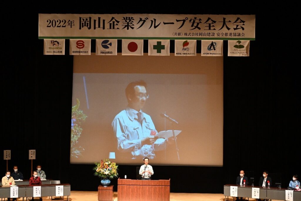 2022年6月24日、岡山企業グループ安全大会を六ヶ所村文化交流プラザ「スワニー」において開催しました。この安全大会は、全国安全週間のイベントの一つとして、行われたもので、岡山企業グループ関係者185名、岡山建設安全推進協議会関係者57名など約300名が参加しました。